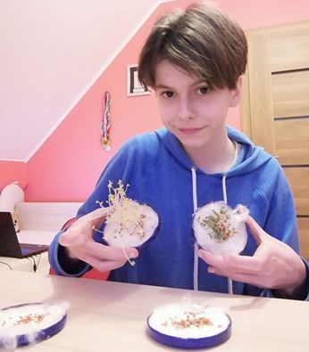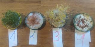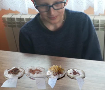 III. W marcu zajmowaliśmy się badaniem wpływu światła na proces fotosyntezy, ustalaliśmy jakie czynniki wpływają na kiełkowanie nasion rzeżuchy, oraz poznaliśmy mechanizm wentylacji płuc. W wymienionych eksperymentach zastosowaliśmy metodę naukową do opisywania doświadczeń. Uczniowie określali próby kontrolne i próby badawcze, ustalali hipotezy i formułowali problemy badawcze oraz wnioski. Wykonaliśmy symulację wdechu i wydechu z wykorzystaniem modelu płuc sporządzonym samodzielnie.