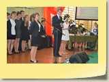 Szczególnie podniosłym momentem było odśpiewanie Hymnu szkoły, którego autorkami są nauczycielki z naszej szkoły: słowa napisała pani Agata Tokarska, muzykę skomponowała pani Urszula Baziak.