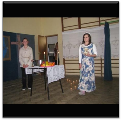 Następnie odbyło się przedstawienie oparte na "Dziadach" Adama Mickiewicza. Spektakl pokazywał obrzędy pogańskie. Guślarz wzywał dusze czyśćcowe i próbował przynieść im ulgę. Aniołki Rózia i Józio nigdy nie zaznały cierpienia, poprosiły o 2 ziarenka gorczycy. Upiór właściciela wioski przyczynił się do śmierci innych osób, więc został skazany na wieczne potępienie. Pasterka Zosia nigdy nikogo nie pokochała, kpiła z chłopców. Sceneria bardzo dobrze oddała tajemniczą aurę tego starego święta.