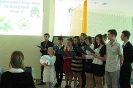 Dnia 14 marca 2013 r. odbyło się podsumowanie projektu edukacyjnego przygotowane przez uczniów klasy II gimnazjum. W obecności uczniów, rodziców i nauczycieli, zaprezentowane zostały efekty pracy nad projektami edukacyjnymi.