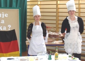 Druga grupa realizowała projekt z języka niemieckiego i podczas jego realizacji szukała odpowiedzi na pytanie: Jak smakuje kuchnia niemiecka? Uczniowie przedstawili podstawowe informacje na temat kuchni naszych sąsiadów, zaprezentowali przygotowaną niemiecko-polską książkę kucharską oraz zaprosili wszystkich rodziców i nauczycieli na degustację słynnego tortu szwardzwaldzkiego. Ponadto wszyscy zaproszeni goście oraz uczniowie otrzymali drobny upominek w postaci ciasteczek upieczonych przez uczestników projektu według niemieckiej receptury.
